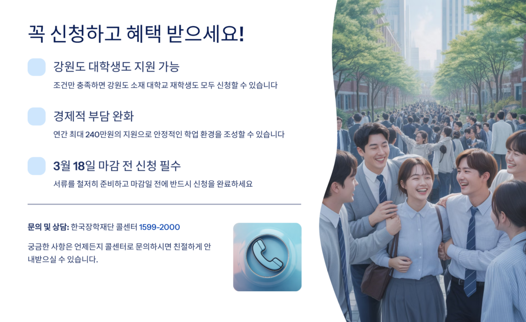 A2. 강원도 전입 후 1년이 경과해야 신청 자격이 생겨요. 주민등록 전입일 기준으로 계산됩니다.
