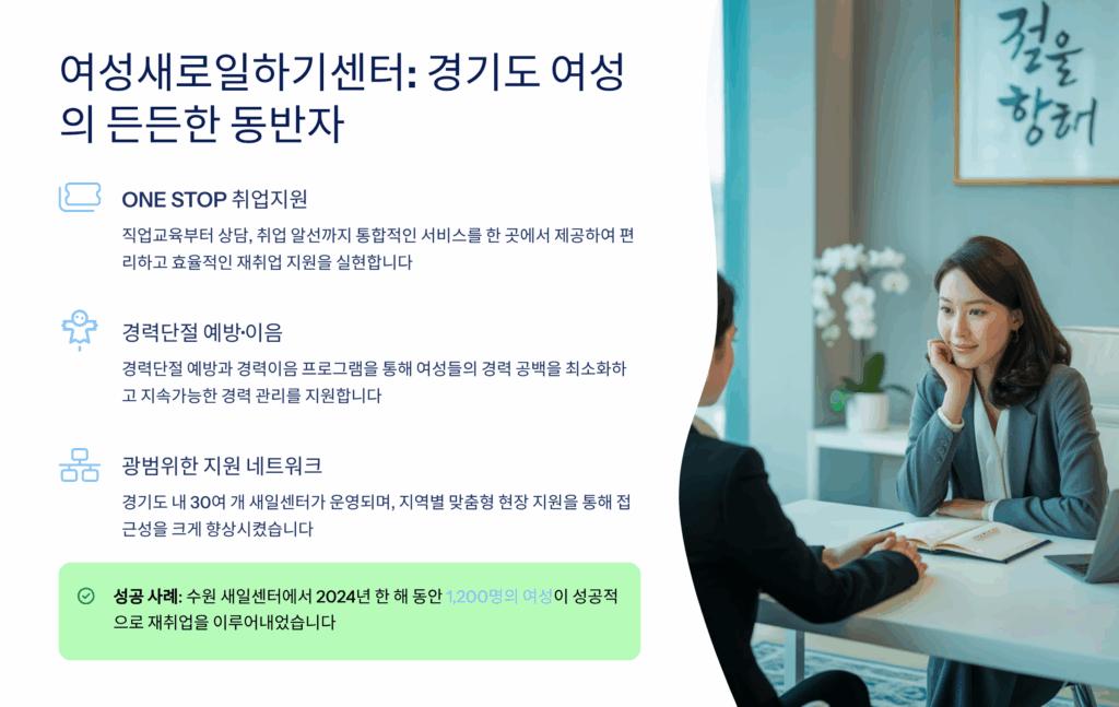 경기도에서 운영하는 경력단절 여성 재취업 지원 프로그램은 정말 다양하고 체계적이에요. 우선 경기여성새로일하기센터(새일센터)가 도내 31개 시군에 35개소가 운영되고 있어요. 각 센터마다 전문 상담사가 상주하며 1:1 맞춤형 취업 상담, 직업교육훈련, 취업 연계, 사후관리까지 원스톱 서비스를 제공하고 있답니다. 2024년 한 해 동안 새일센터를 통해 2만 3천여 명이 재취업에 성공했으며, 평균 취업 소요 기간은 3.2개월로 나타났어요.