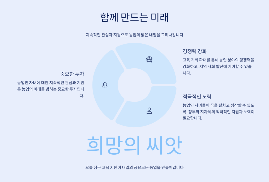 • 농업 관련 학과 우대로 농업 후계자 육성 적극 지원