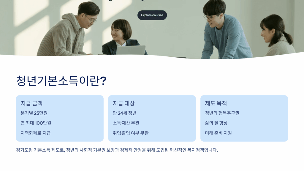 경기도에서 청년들의 경제적 부담을 덜어주기 위해 시행하는 청년기본소득! 2025년 현재 만 19세부터 24세까지의 경기도 청년이라면 누구나 분기별 25만원씩 연간 100만원을 지원받을 수 있어요. 이 제도는 청년들의 기본적인 생활 안정과 미래 준비를 돕기 위해 마련되었답니다.