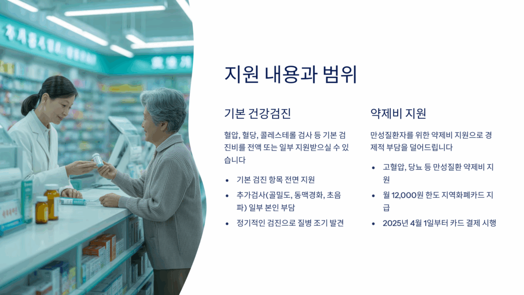 💡 실생활 도움 포인트: 이 지원사업을 통해 어르신들은 연 1회 종합검진을 부담 없이 받을 수 있어요. 특히 만성질환과 암을 조기에 발견해 치료 시기를 놓치지 않고, 의료비 절감 효과도 크답니다. 건강한 100세 시대를 준비하는 첫걸음으로 꼭 신청하시길 권해드려요!