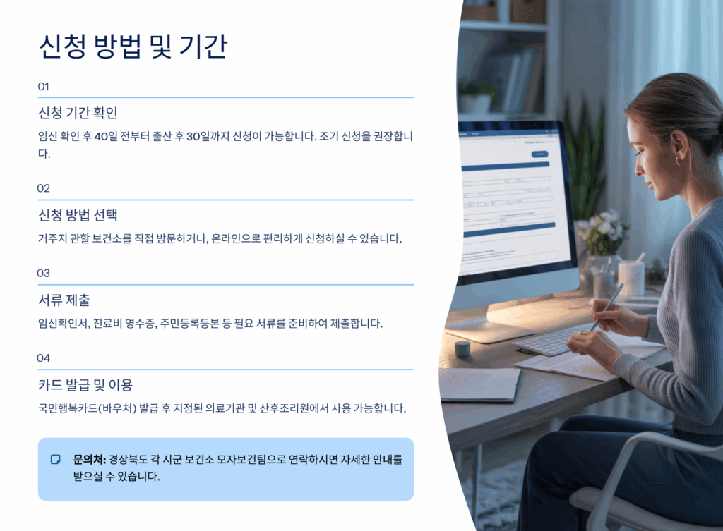 경북 산모 건강비용 지원 신청은 크게 온라인과 오프라인 두 가지 방법으로 가능해요. 온라인 신청은 경북도청 홈페이지나 정부24를 통해 할 수 있으며, 24시간 언제든지 신청 가능하다는 장점이 있어요. 오프라인 신청은 주소지 관할 보건소나 읍면동 행정복지센터를 방문하면 되는데, 직접 상담을 받을 수 있어 처음 신청하는 분들에게 추천해요. 보건소 방문 시에는 평일 오전 9시부터 오후 6시까지 신청 가능하답니다.
