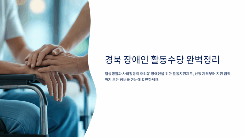 경북 지역 장애인분들의 자립생활을 지원하는 활동수당은 일상생활과 사회활동 참여를 돕는 중요한 복지제도예요. 2025년 기준으로 경상북도는 중증장애인의 활동지원을 위해 다양한 형태의 수당을 제공하고 있답니다. 활동보조, 방문목욕, 방문간호 등의 서비스를 이용할 수 있는 바우처 형태로 지원되고 있어요.