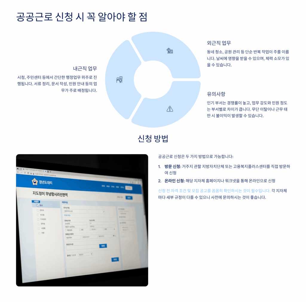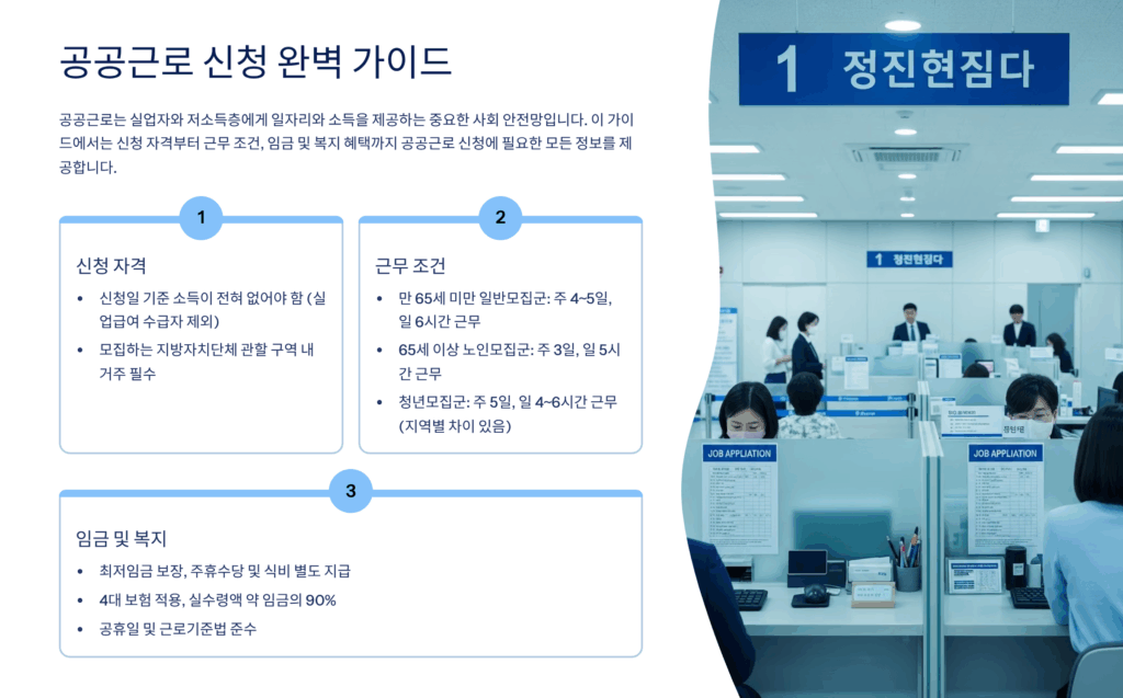 본 글은 2025년 1월 기준 일반적인 공공근로 신청 정보를 제공하는 것으로, 지자체별로 세부 규정과 운영 방식이 다를 수 있습니다. 정확한 정보는 거주지 시군구청이나 읍면동 주민센터에 직접 문의하시기 바랍니다. 본 정보는 참고용으로만 활용하시고, 실제 신청 시에는 공식 기관의 안내를 따라주세요.