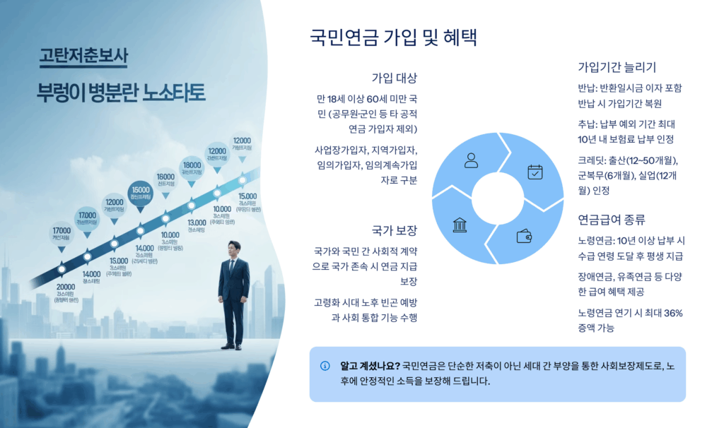 국민연금 지원금은 대한민국 국민의 노후 생활 안정과 복지 향상을 위해 마련된 중요한 사회보장제도예요. 정부에서는 경제적으로 어려운 상황에 있는 국민들이 국민연금에 가입하고 유지할 수 있도록 다양한 지원금 제도를 운영하고 있답니다. 특히 2025년에는 더욱 확대된 지원 정책이 시행되고 있어요.