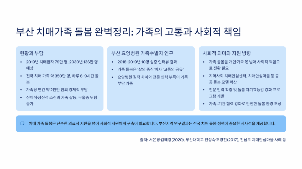 본 글은 2025년 1월 기준 부산시 치매가족 돌봄 지원 정보를 제공하기 위한 목적으로 작성되었습니다. 정책과 지원 내용은 변경될 수 있으므로, 최신 정보는 부산광역시 치매안심센터 또는 관련 기관에 직접 문의하시기 바랍니다. 본 정보는 의학적 조언을 대체할 수 없으며, 구체적인 의료 상담은 전문의와 상의하시기 바랍니다.