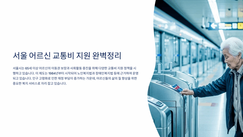 서울시는 만 65세 이상 어르신들의 활발한 사회활동을 지원하기 위해 교통비 지원 사업을 운영하고 있어요. 2025년 현재 연간 13만원의 교통비를 지원받을 수 있으며, 이는 어르신들의 경제적 부담을 덜어주는 중요한 복지 정책이에요. 서울시에 거주하는 어르신이라면 누구나 신청할 수 있답니다! 🚇