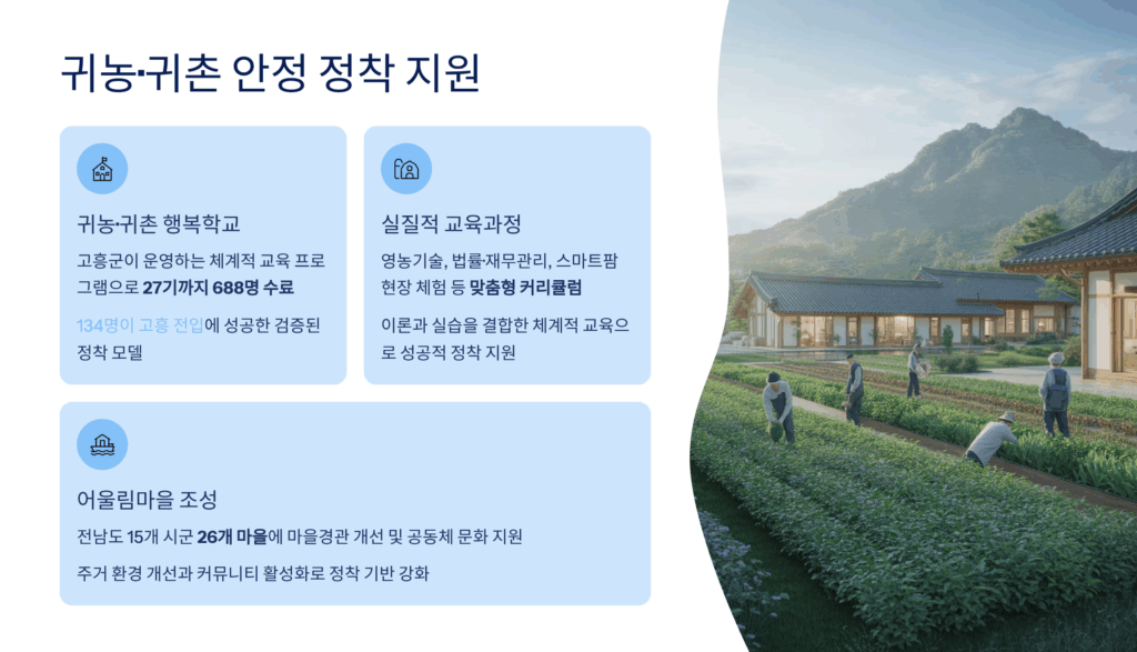농촌 관광 프로그램도 인기예요. 고령농을 위한 ‘효도관광’ 사업으로 연 1회 무료 관광을 지원합니다. 도내 주요 관광지는 물론 타 지역 선진 농업 현장도 견학해요. 신안군은 섬 지역 고령농을 위해 육지 나들이 프로그램을 별도로 운영하고 있답니다. 진도군은 문화유적 탐방 프로그램을 통해 지역 역사를 배우는 기회를 제공해요.