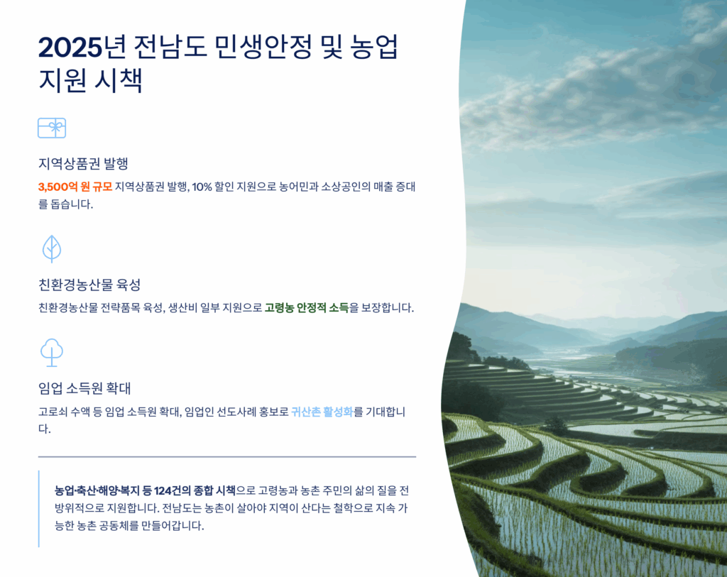 본 글에 제공된 정보는 2025년 1월 기준이며, 정책 내용은 변경될 수 있습니다. 정확한 정보는 전라남도청 및 해당 시군 농정 담당 부서에 확인하시기 바랍니다. 지원 자격과 금액은 개인별 상황에 따라 다를 수 있으며, 본 정보는 참고용으로만 활용하시기 바랍니다.