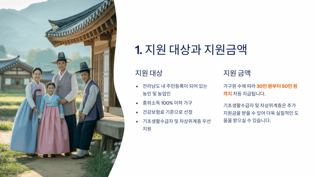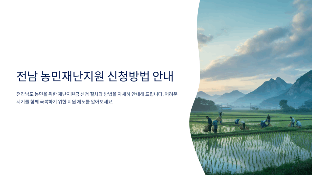 신청 과정이 복잡해 보일 수 있지만, 차근차근 준비하시면 어렵지 않게 신청할 수 있어요. 오늘은 전남 농민재난지원금 신청에 필요한 모든 정보를 상세하게 알려드릴게요. 지원대상부터 신청방법, 필요서류까지 하나하나 짚어가며 설명해드리니 끝까지 읽어보시면 도움이 될 거예요! 😊