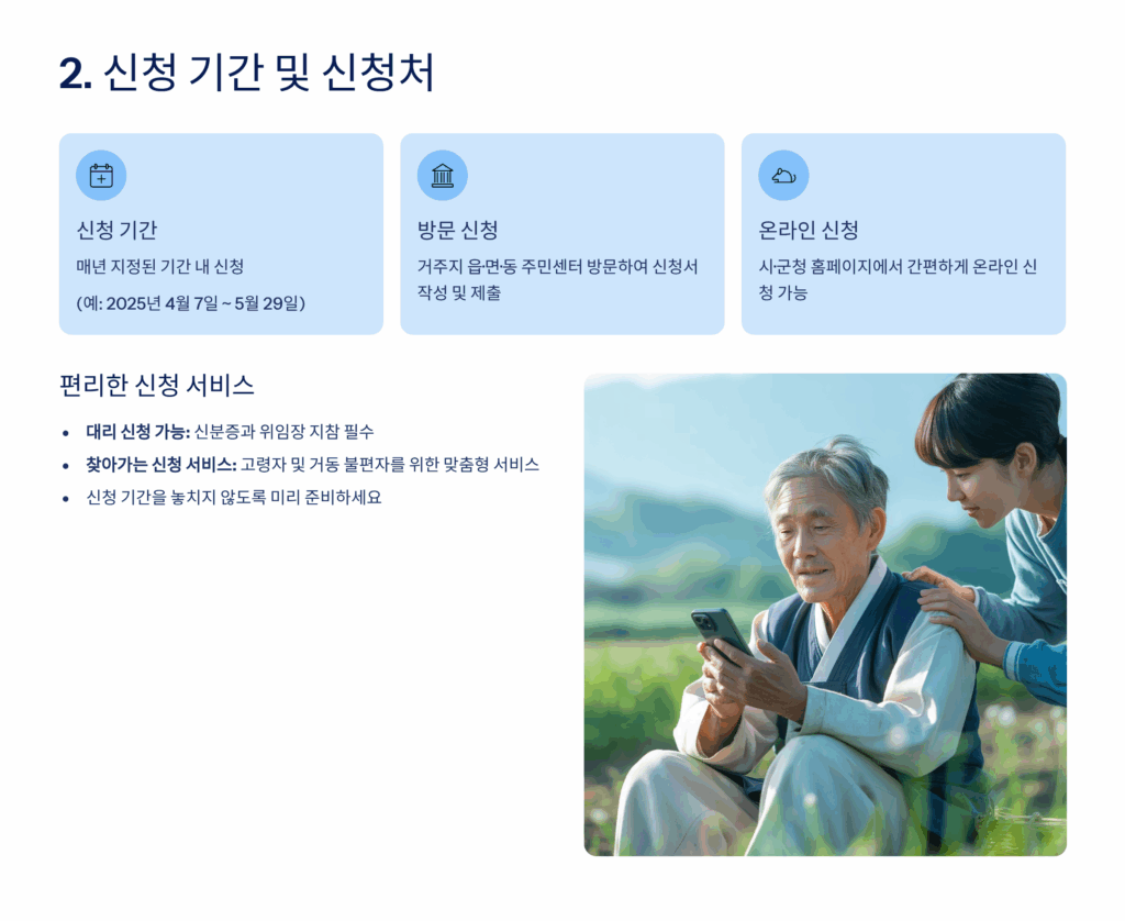 온라인 신청이 어려우신 분들은 직접 방문해서 신청하실 수 있어요. 주소지 관할 읍면동 주민센터나 시군 농업기술센터, 농협 지점에서 신청이 가능하답니다. 방문 전에 미리 전화로 문의하시면 필요한 서류와 담당자 근무시간을 확인할 수 있어서 헛걸음을 방지할 수 있어요. 평일 오전 9시부터 오후 6시까지 접수가 가능한데, 점심시간(12시~1시)은 피하시는 게 좋아요.