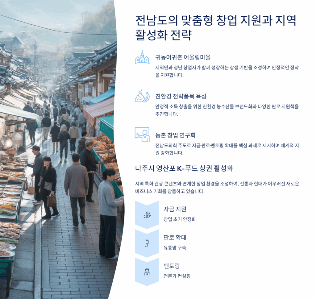 전남도 자체 지원사업도 다양해요. 어촌체험관광 활성화 사업은 체험프로그램 개발, 홍보마케팅, 안전시설 개선 등에 최대 5천만 원을 지원해요. 섬 가꾸기 사업은 도서지역 관광인프라 구축에 중점을 두고 있어서, 섬 지역에서 창업하려는 분들에게 유리해요. 어촌 6차산업화 지원사업은 수산물 가공, 체험, 관광을 연계한 융복합 사업모델을 지원하는데, 최대 2억 원까지 지원받을 수 있답니다.