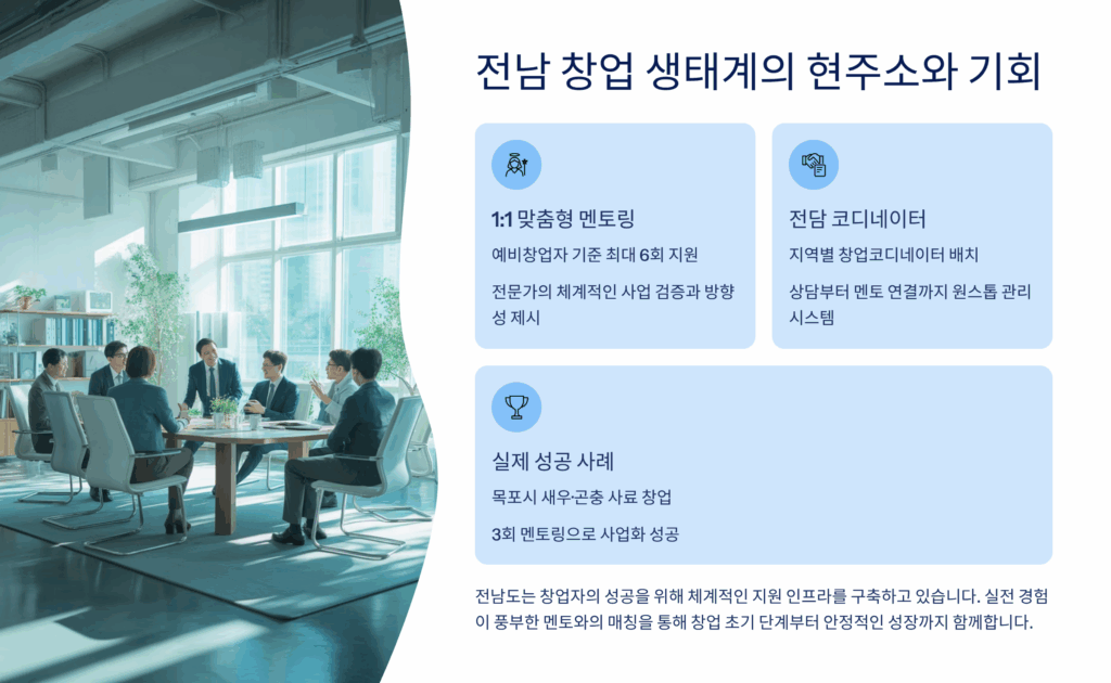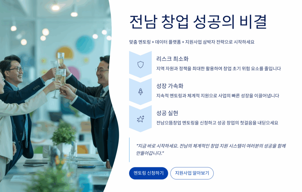 본 콘텐츠는 2025년 1월 기준 전남 지역 창업 컨설팅 정보를 제공하는 것으로, 실제 지원 내용과 조건은 변경될 수 있습니다. 구체적인 사항은 해당 기관에 직접 문의하시기 바랍니다.