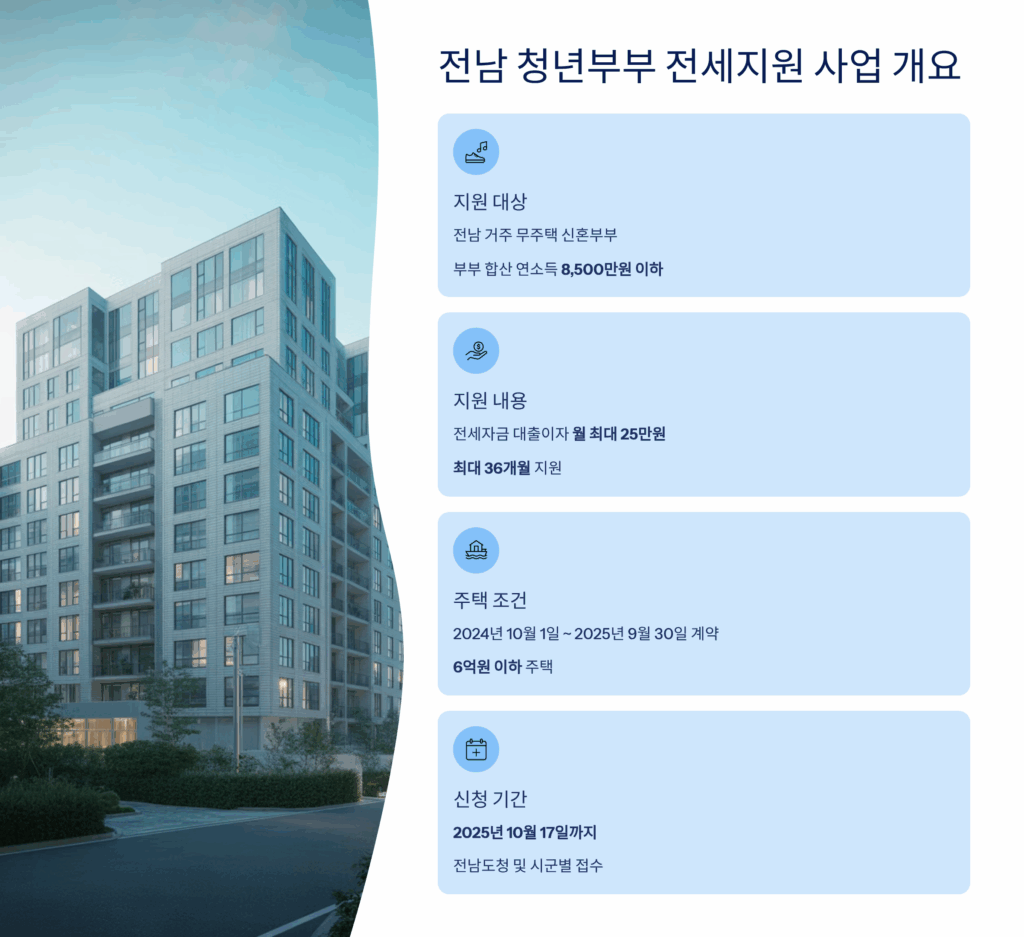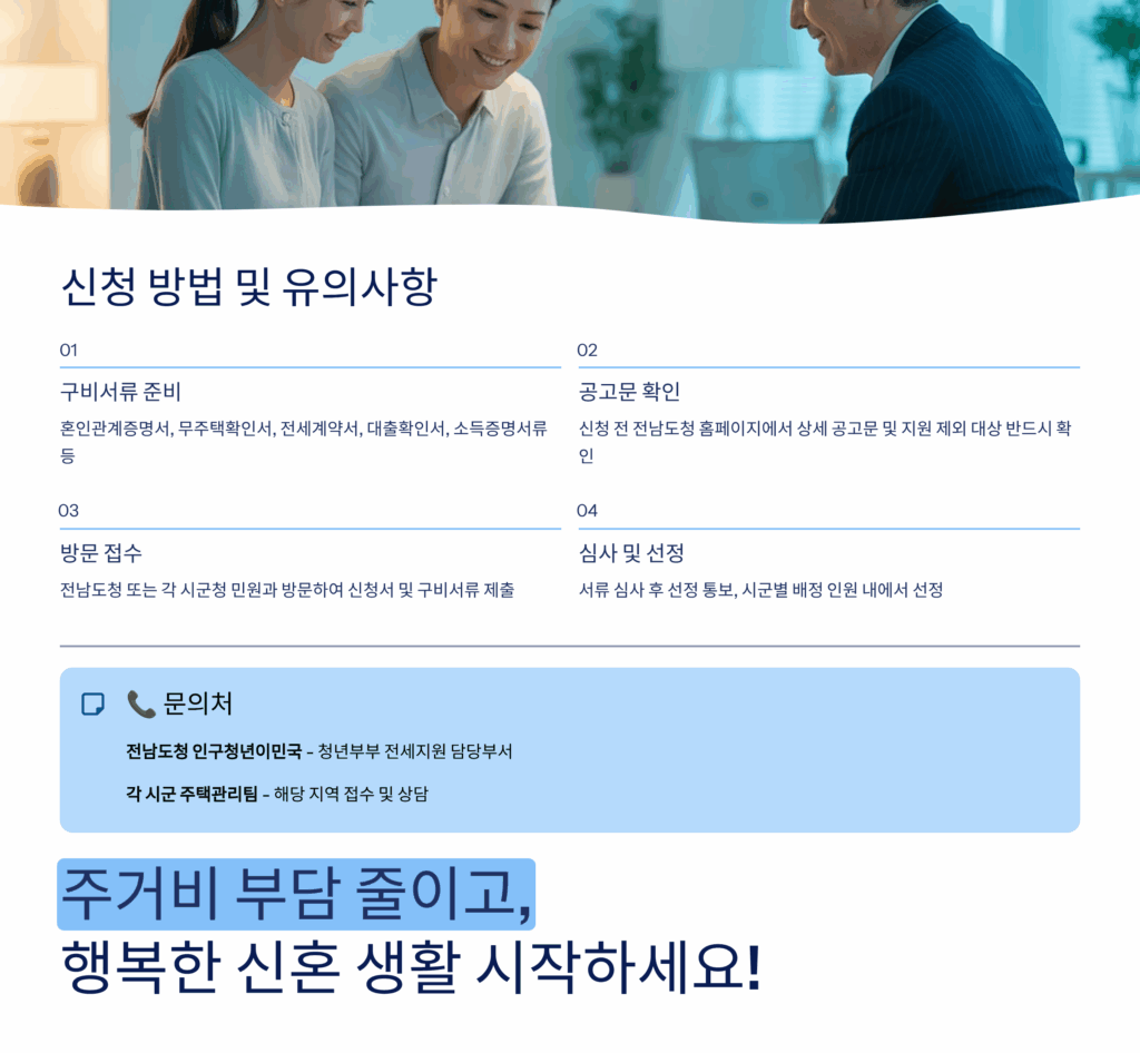 전라남도에서 청년부부들의 주거안정을 위해 시행하는 전세지원금 제도가 2025년 더욱 확대되어 많은 관심을 받고 있어요. 특히 신혼부부와 예비부부, 그리고 자녀가 있는 청년가구까지 지원대상이 넓어져서 더 많은 분들이 혜택을 받을 수 있게 되었답니다. 전남도는 청년인구 유출을 막고 정착을 유도하기 위해 파격적인 조건으로 지원하고 있어요.