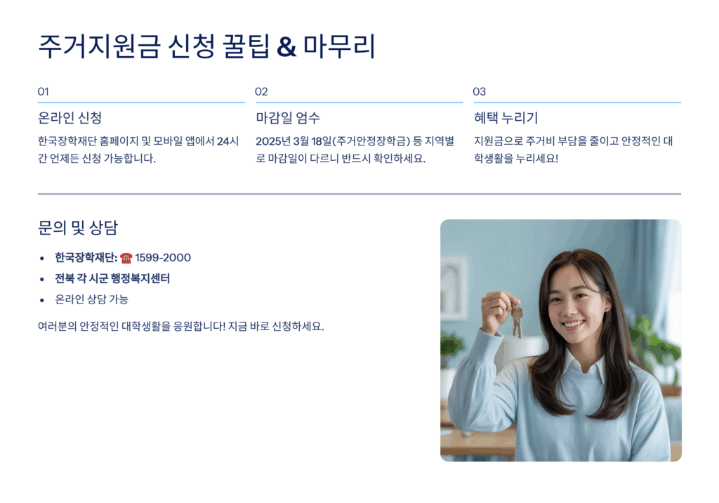 전북 대학생 주거지원금은 단순한 경제적 지원을 넘어 청년들의 미래를 응원하는 투자예요. 이 지원금으로 학생들은 주거 걱정 없이 학업과 꿈에 집중할 수 있게 됩니다! 🌈