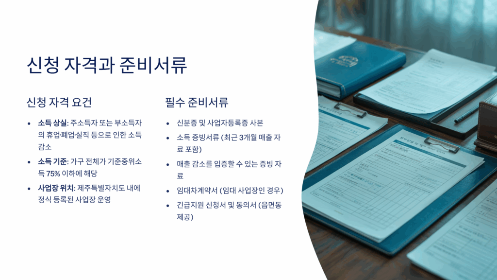 제주 자영업자 생계지원금을 받기 위해서는 몇 가지 자격 요건을 충족해야 해요. 우선 제주특별자치도에 사업장을 두고 있어야 하며, 사업자등록을 한 지 최소 1년 이상 경과해야 한답니다. 개인사업자뿐만 아니라 법인사업자도 신청 가능하지만, 상시 근로자 수가 10인 미만인 소규모 사업장에 한해 지원돼요. 또한 신청일 기준으로 휴업이나 폐업 상태가 아니어야 하죠.
