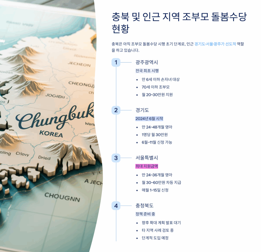 충북도는 ‘함께 돌보는 충북’이라는 비전 아래 가족돌봄 지원체계를 체계적으로 구축했어요. 영유아부터 노인까지 생애주기별 맞춤 돌봄서비스를 제공하며, 경제적 부담을 덜어주는 다양한 수당과 바우처 제도를 운영하고 있답니다. 나의 생각으로는 이러한 정책들이 실제로 도민들의 일상생활에 큰 도움이 되고 있는 것 같아요.