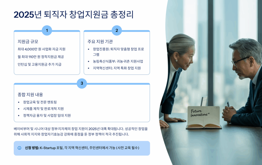 퇴직자 창업지원금은 일정 나이 이상의 은퇴자나 조기 퇴직자를 대상으로 창업 초기 자금과 교육, 멘토링을 제공하는 정부의 제도예요. 특히 40대 이상 퇴직자들이 안정적으로 사회에 복귀할 수 있도록 설계된 정책이에요.